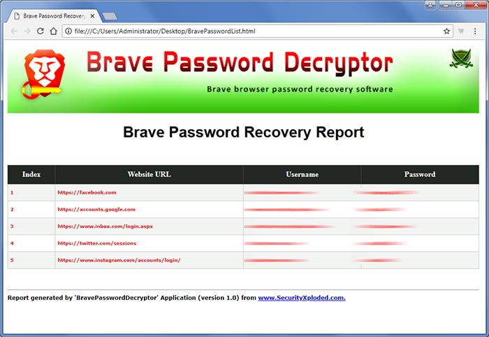 Brave Password Decryptor : Free Software to Recover Your Lost Login Password from Brave Browser